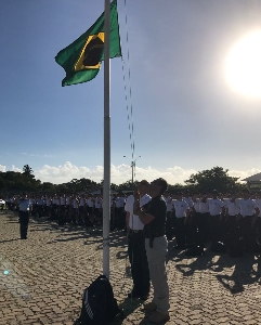 O secretário da Segurança Pública, André Costa, visitou, nesta terça-feira (25), os alunos do Curso de Formação Profissional para Carreira de Praças da Polícia Militar do Ceará (CFPCP/PM), lotados na Academia Estadual de Segurança Pública do Ceará (Aesp/CE). Na visita surpresa, o titular da SSPDS, teve a oportunidade de acompanhar de perto a rotina diária dos alunos, participando da formatura matinal do curso e trocando experiências com os futuros soldados.