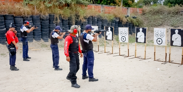 Os candidatos aprovados na primeira turma do Curso de Formação Profissional para a Carreira de Praças da Polícia Militar (CFP/PMCE) lotados na Academia Estadual de Segurança Pública do Ceará (Aesp/CE) e nas unidades da PM em Fortaleza, participam de treinamento de tiro policial defensivo, com arma longa. A instrução visa habilitar e adaptar os futuros policiais militares a operarem de forma segura armas longas, como carabina (CT-40) e submetralhadoras (MT-40), dentro dos princípios da legalidade e proporcionalidade.