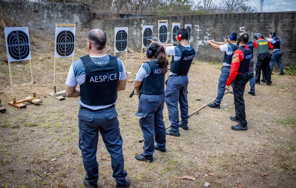A Academia Estadual de Segurança Pública do Ceará – Aesp/CE realizou aulas práticas da disciplina de Tiro Defensivo com os alunos da 3ª turma do Curso de Formação Inicial da Perícia Forense do Estado do Ceará – Pefoce. A atividade faz parte do processo de qualificação dos futuros profissionais que atuarão em diversas frentes. Participam da capacitação servidores em formação para os cargos de médico perito legista, perito legista, perito criminal, auxiliar de perícia – COMEL e auxiliar de perícia – COPEC/CALF/CIHPB.