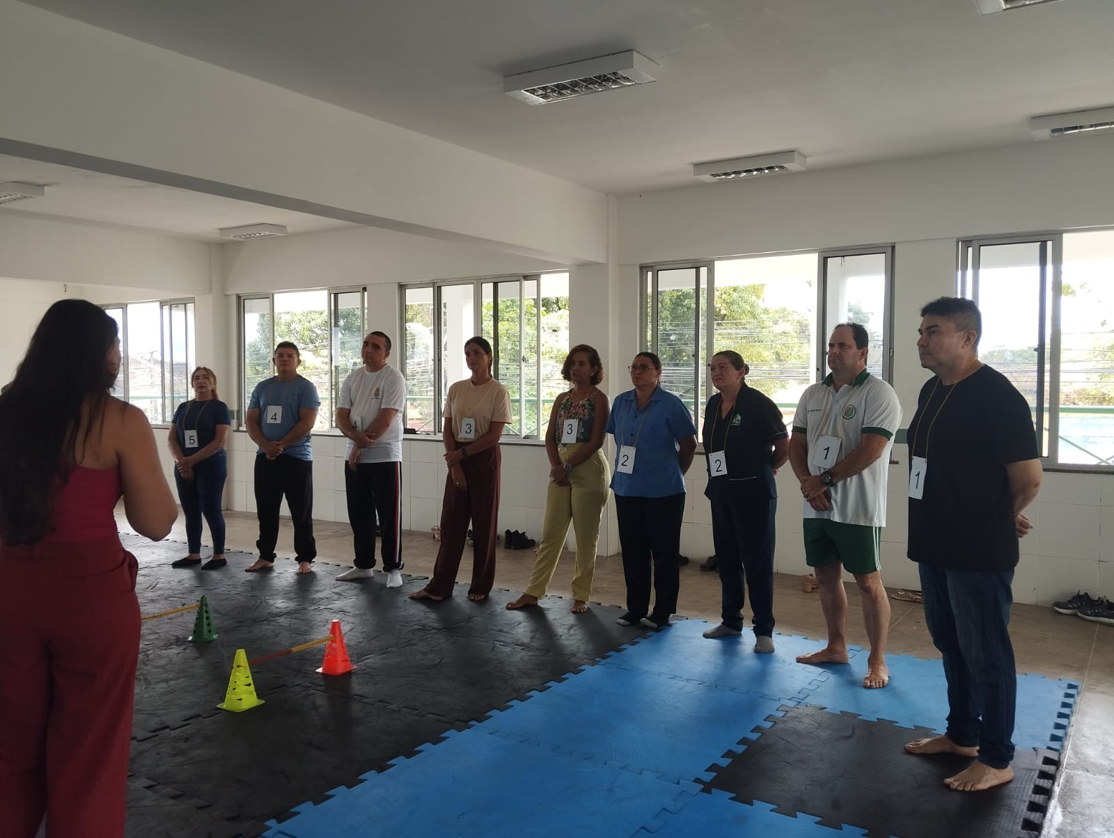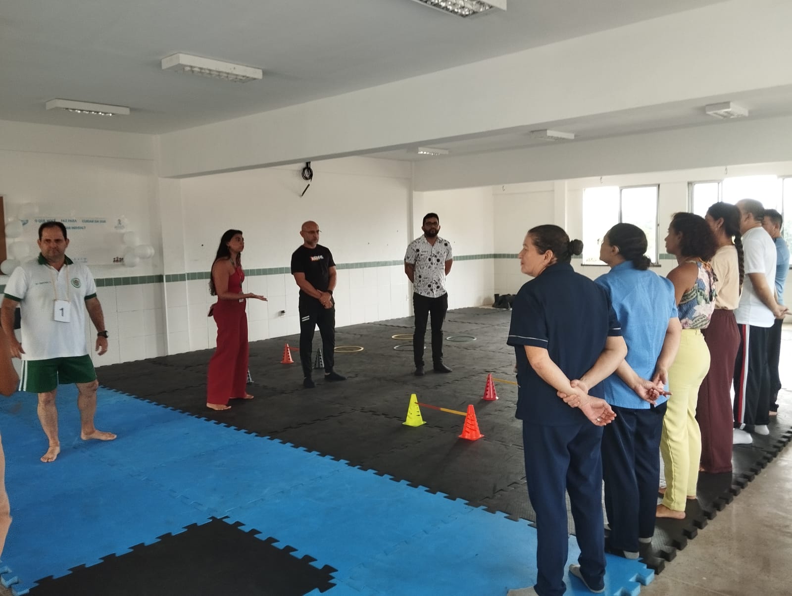 A dinâmica foi organizada em três momentos. O primeiro contou com um circuito de atividades físicas, conduzido por profissional de Educação Física, com foco no movimento, na interação e na liberação de tensões. Em seguida, os participantes participaram de um quiz no formato “complete a música”, com canções conhecidas e regionais, promovendo descontração, socialização e conexão emocional. O terceiro momento foi conduzido por um psicólogo e teve como proposta trabalhar o conceito do “aqui e agora”. A atividade proporcionou um espaço de descompressão e reflexão sobre pequenos hábitos de autocuidado e práticas que contribuem para a saúde mental.