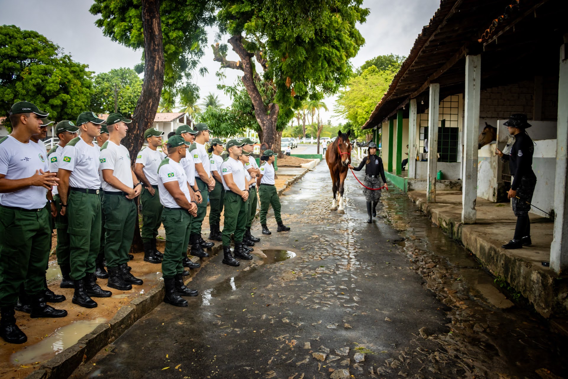 Com atividades práticas realizadas na estrutura da cavalaria, alunos do Curso de Formação de Oficiais da Polícia Militar do Ceará (CFO PMCE) participaram da aula da disciplina de Policiamento Montado. A instrução teve foco na vivência operacional e na apresentação das rotinas, técnicas e cuidados que envolvem o serviço policial a cavalo.
