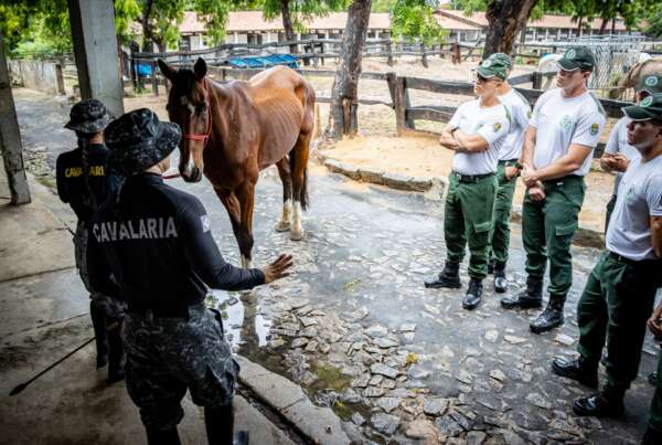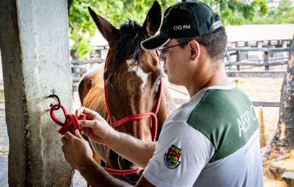 Segundo o capitão Colares, instrutor da Aesp/CE, a aula busca apresentar todas as etapas do trabalho desenvolvido pela cavalaria. “Iniciamos com o cabresteamento e a condução do cavalo, sempre reforçando os critérios de segurança. Em seguida, trabalhamos o encilhamento, que envolve a limpeza do animal e a colocação correta dos equipamentos. Também apresentamos a estrutura do regimento como baias, enfermaria e ferradoria”, explicou.