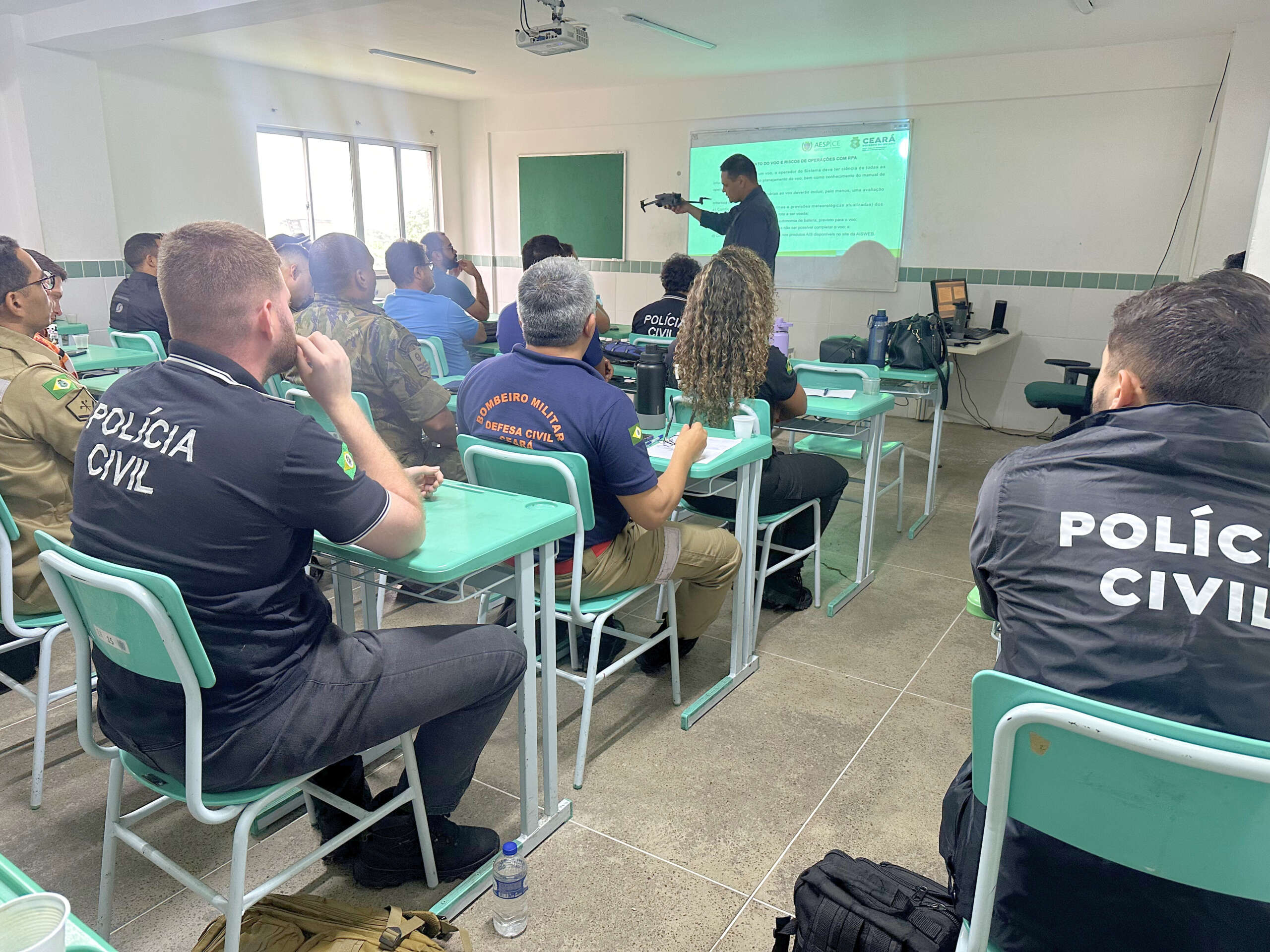 A Academia Estadual de Segurança Pública do Ceará (Aesp/CE) iniciou, nesta quinta-feira (5), o Curso Básico de Operador de Drone para Segurança Pública. A capacitação reúne profissionais de diferentes instituições, como Polícia Civil, Polícia Militar, Corpo de Bombeiros Militar, Perícia Forense do Estado do Ceará e também integrantes das Forças Armadas, como Exército Brasileiro, Marinha do Brasil e Força Aérea Brasileira. Com 30 alunos e carga horária de 52 horas/aula, o curso acontece até o dia 12 de março e tem como foco o uso seguro, técnico e legal de aeronaves remotamente pilotadas no contexto das atividades de segurança pública.