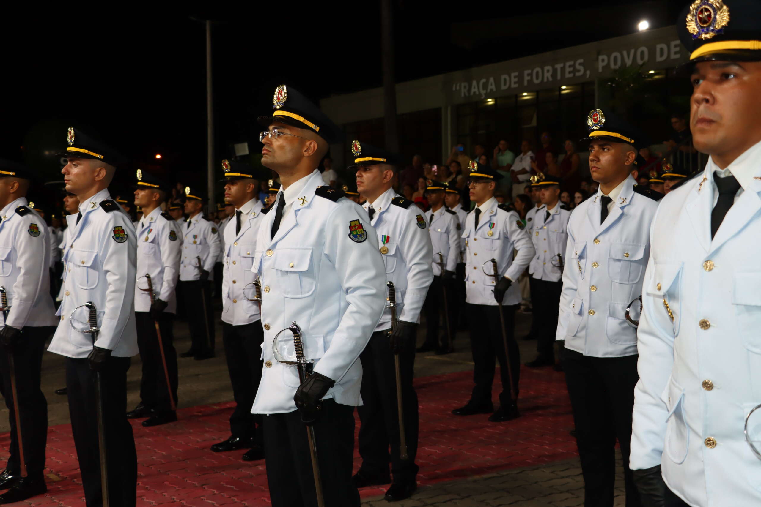 A solenidade contou com a presença do governador Elmano de Freitas, do secretário da Segurança Pública e Defesa Social, Roberto Sá, do comandante-geral da PMCE, coronel Sinval Sampaio, do diretor geral da Academia Estadual de Segurança Pública do Ceará (Aesp), Delegado Leonardo Barreto. O evento simboliza a transição dos cadetes para a fase de aspirantado, etapa que antecede a promoção ao posto de 2º tenente.