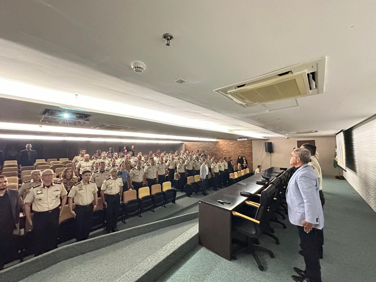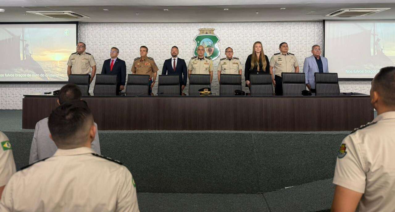 A Academia Estadual de Segurança Pública do Ceará (Aesp/CE) e a Casa Militar do Ceará realizaram, nesta segunda-feira (16), a aula inaugural do Curso de Segurança de Autoridades Governamentais (CSAG) – Nível Gerencial. A solenidade aconteceu no Palácio da Abolição e reuniu autoridades, instrutores e alunos para o início de mais uma etapa de formação estratégica na área da segurança pública. O momento foi marcado pela palestra do coronel PM da Reserva Remunerada, Francisco Túlio Studart de Castro Filho, que abordou o tema “O Perfil do Agente de Segurança Governamental”.