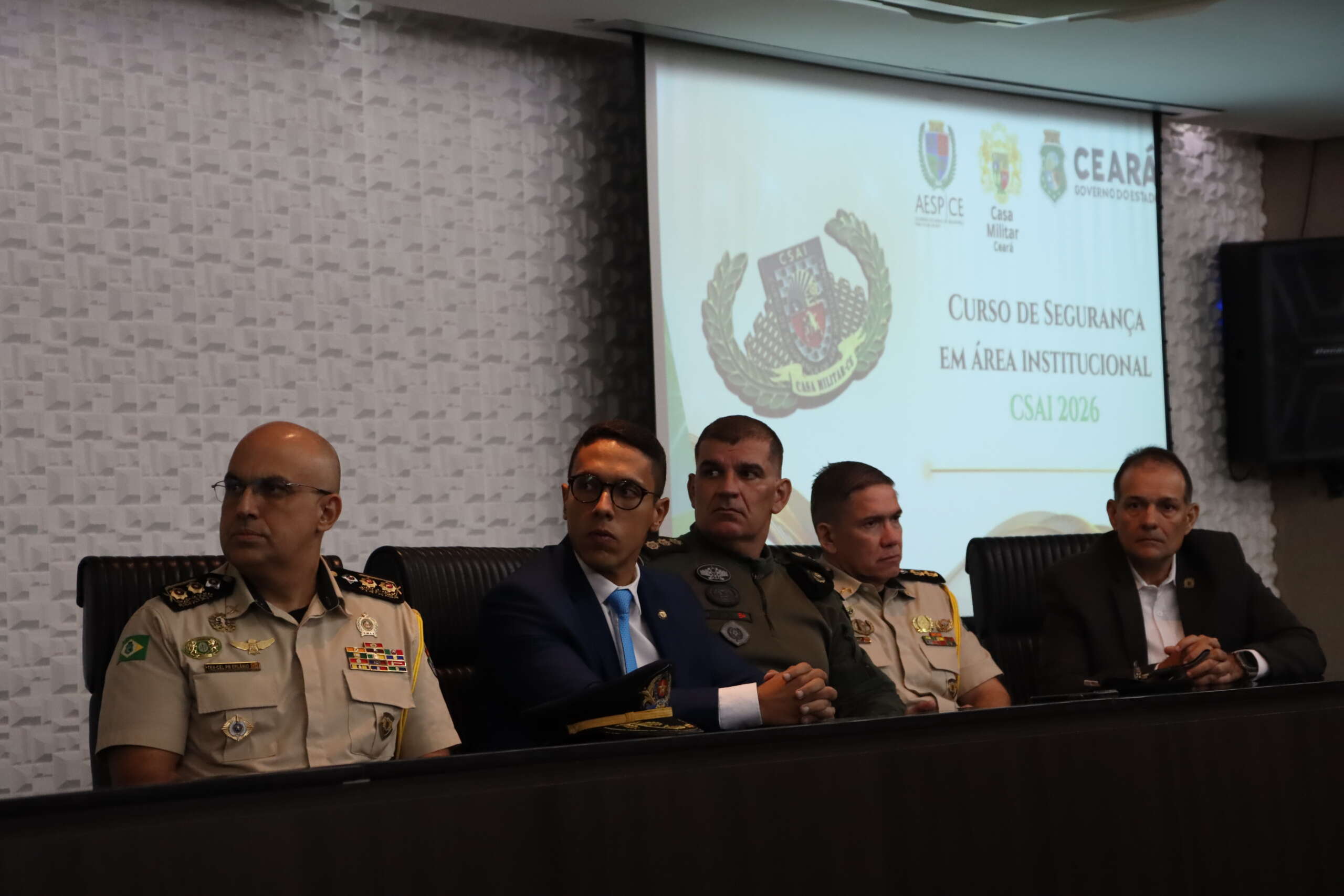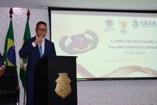 A Academia Estadual de Segurança Pública do Ceará (Aesp/CE), em parceria com a Casa Militar do Ceará, iniciou, nesta segunda-feira (24), ao Curso de Segurança em Área Institucional (CSAI) 2026. A solenidade de abertura e a aula inaugural foram realizadas no auditório do Palácio da Abolição, marcando o começo de uma formação estratégica que reúne 50 agentes de diferentes órgãos de segurança.